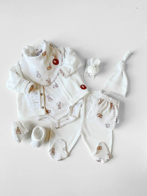Nuestro adorable ajuar clasic dormilon, confeccionado con el suave y delicado algodón pima, es la elección perfecta para acompañar los primeros momentos de tu bebé con comodidad y estilo.