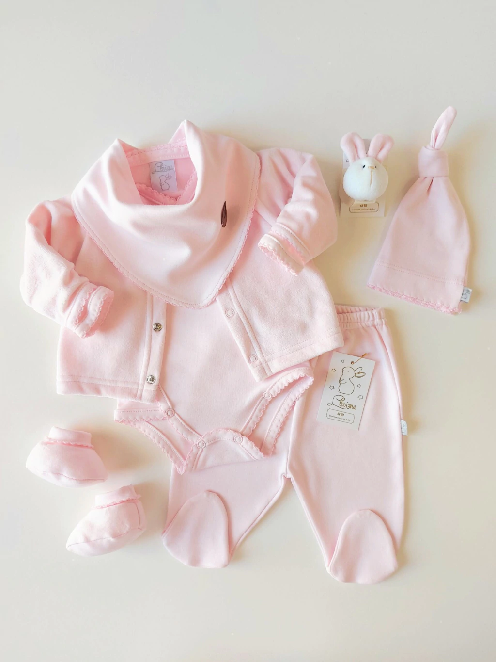 Este delicado conjunto está diseñado pensando en la delicada piel de tu pequeño tesoro, proporcionándole la máxima comodidad y cuidado.