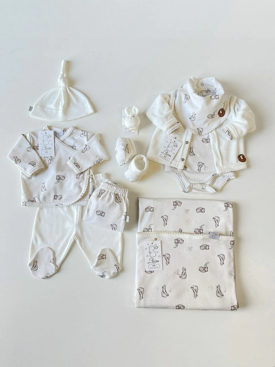 El ajuar incluye 10 prenditas esenciales para mantener a tu bebé cómodo y abrigado en cualquier ocasión:
