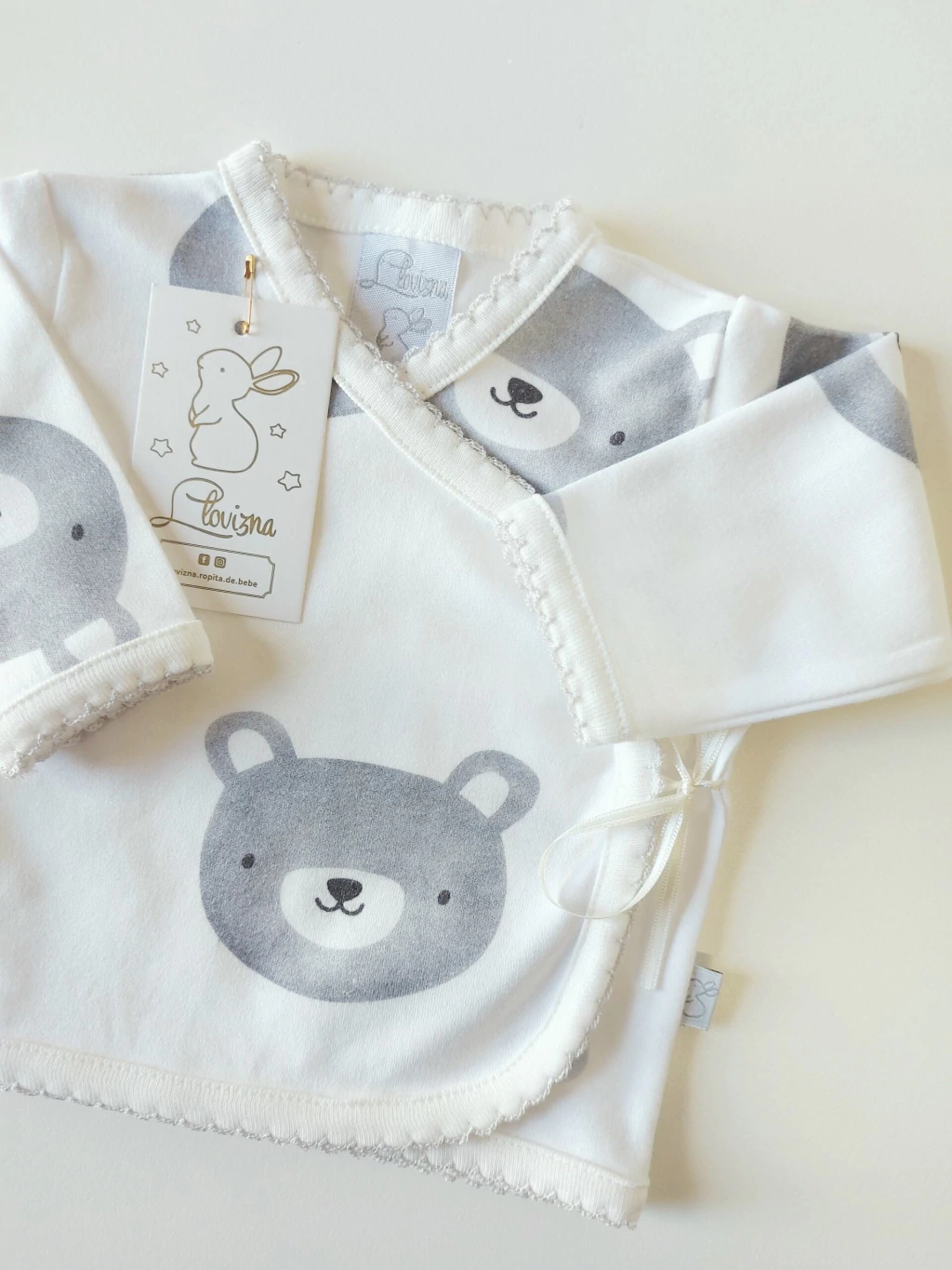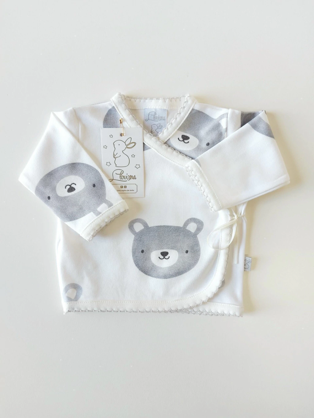 Con un diseño cuidadosamente pensado, esta batita cuenta con un cierre cruzado que ofrece facilidad al vestir al bebé, asegurando un ajuste cómodo y seguro. Además, un botón interno proporciona una sujeción adicional para mantener al bebé abrigado en todo momento. Completa con una cintita de bebé para atar por fuera, esta batita combina funcionalidad y estilo a la perfección.