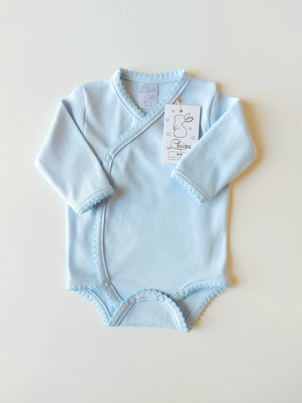 Fabricado con el más suave algodón pima, este body ofrece el máximo confort para la delicada piel de tu pequeño. Su terminación en picot añade un toque de ternura y estilo.