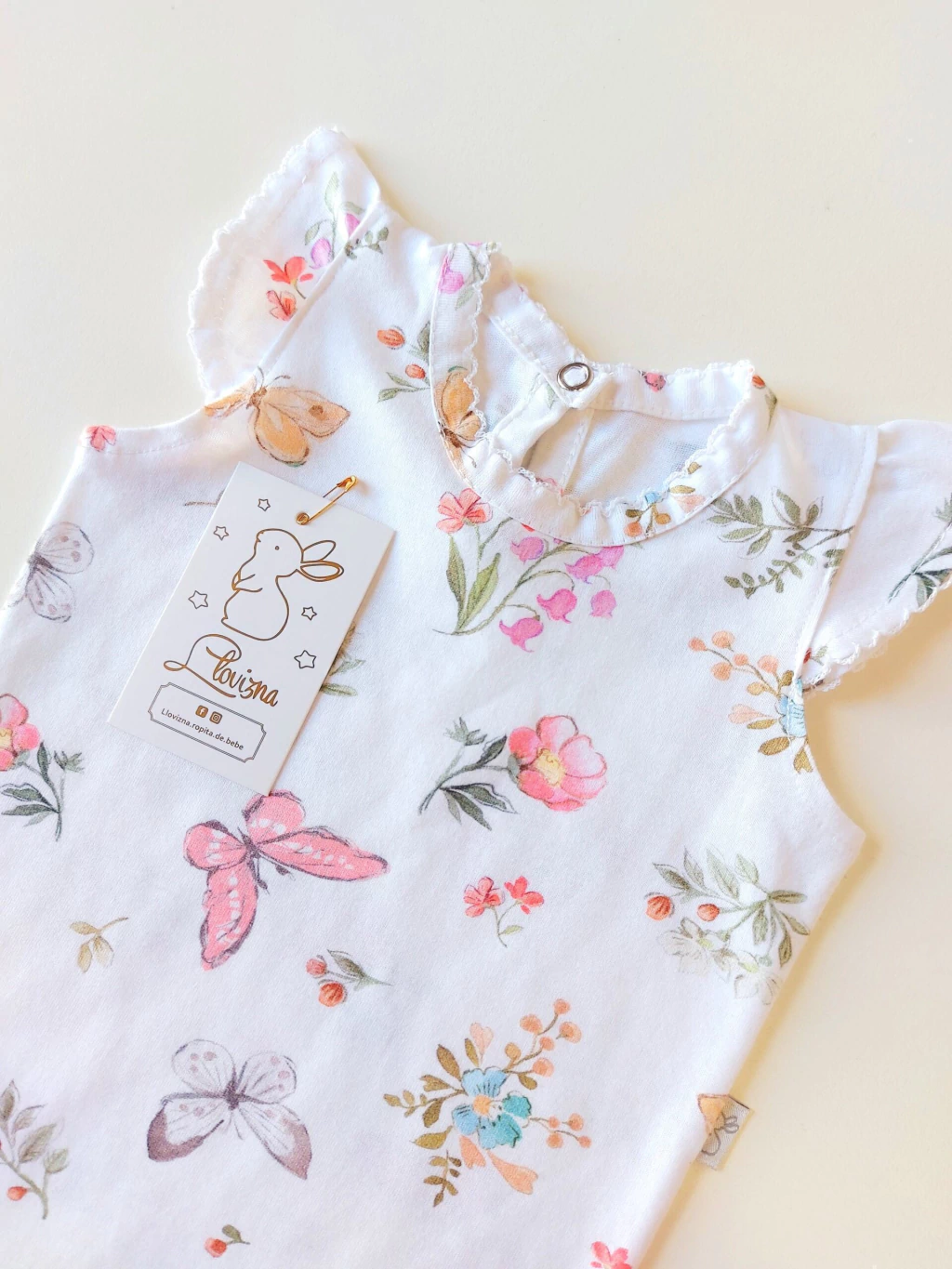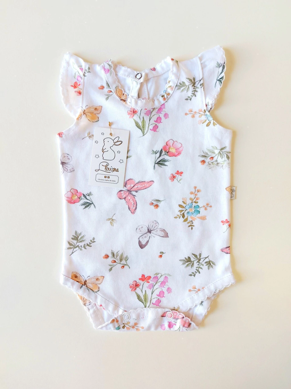 Este hermoso body de bebé de manga corta con vuelos es la combinación perfecta de suavidad y delicadeza. Confeccionado en 100% algodón pima, garantiza una sensación suave y agradable en la piel de tu pequeño. Las terminaciones en picot añaden un toque encantador, mientras que el cierre de broches facilita el cambio de pañal sin complicaciones.
