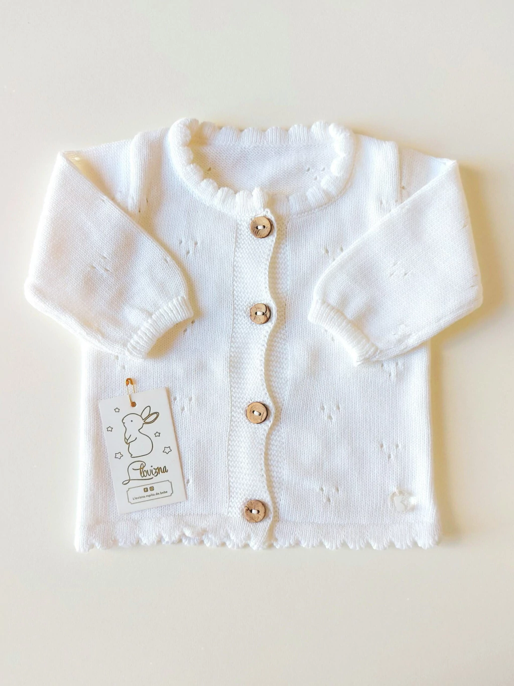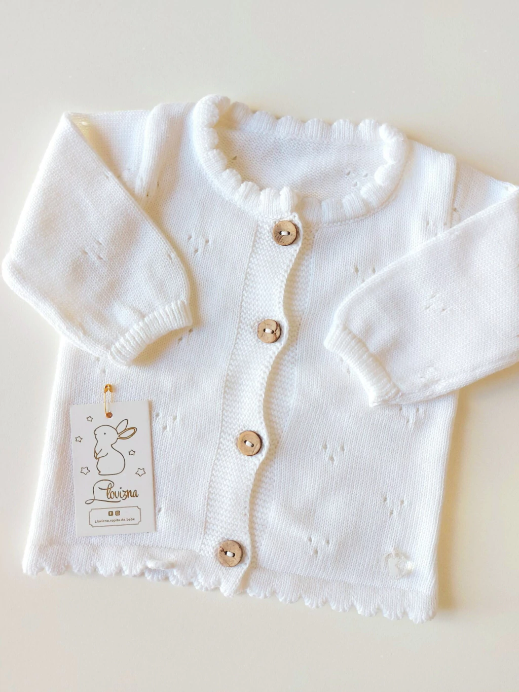 Una prenda llena de encanto y delicadeza. Nuestra hermosa camperita está confeccionada en hilo de algodón de excelente calidad, con un adorable diseño calado que la convierte en una opción única y súper especial.