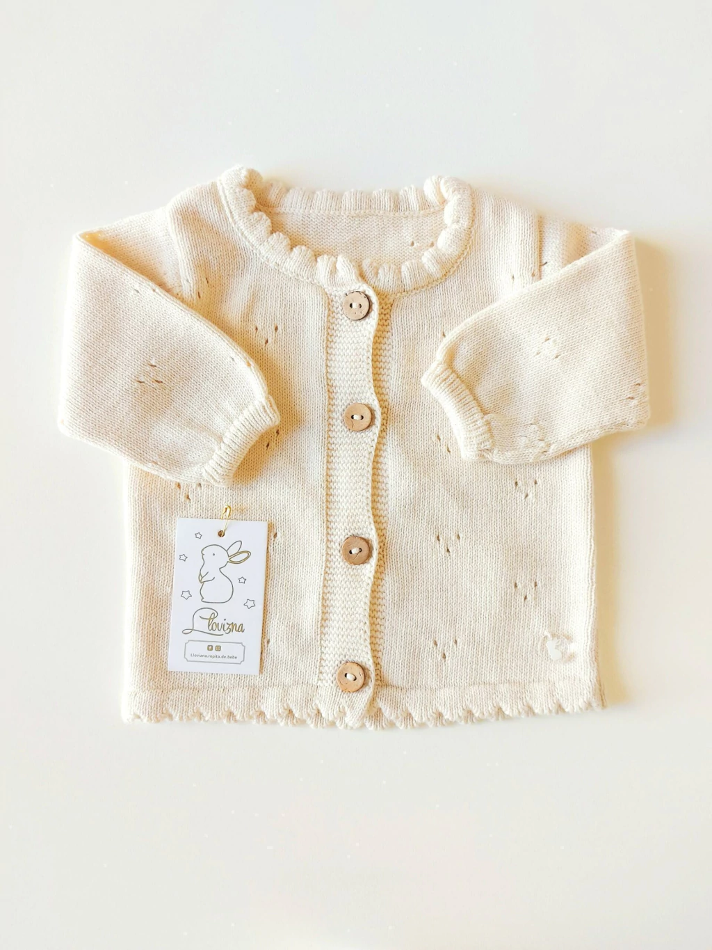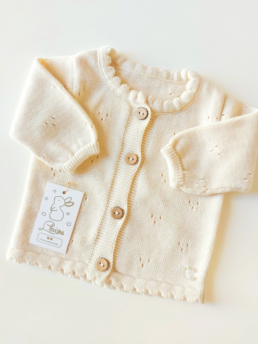 Una prenda llena de encanto y delicadeza. Nuestra hermosa camperita está confeccionada en hilo de algodón de excelente calidad, con un adorable diseño calado que la convierte en una opción única y súper especial.