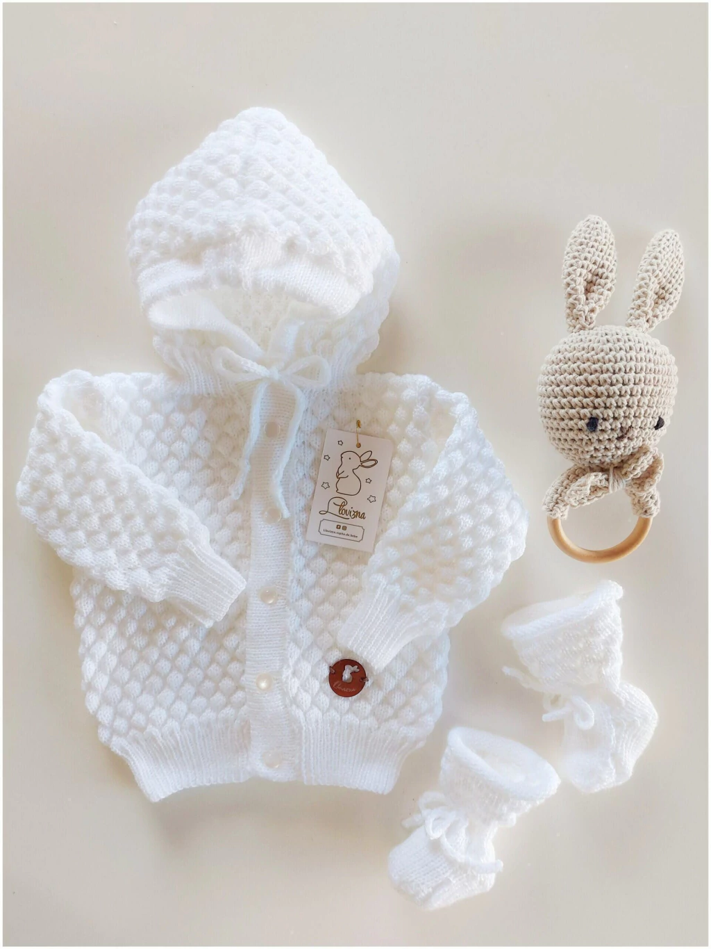 ¡Mantén a tu pequeño abrigado y cómodo con nuestra adorable camperita de bebé, tejida con lana hipoalergénica para cuidar la delicada piel de tu tesoro!