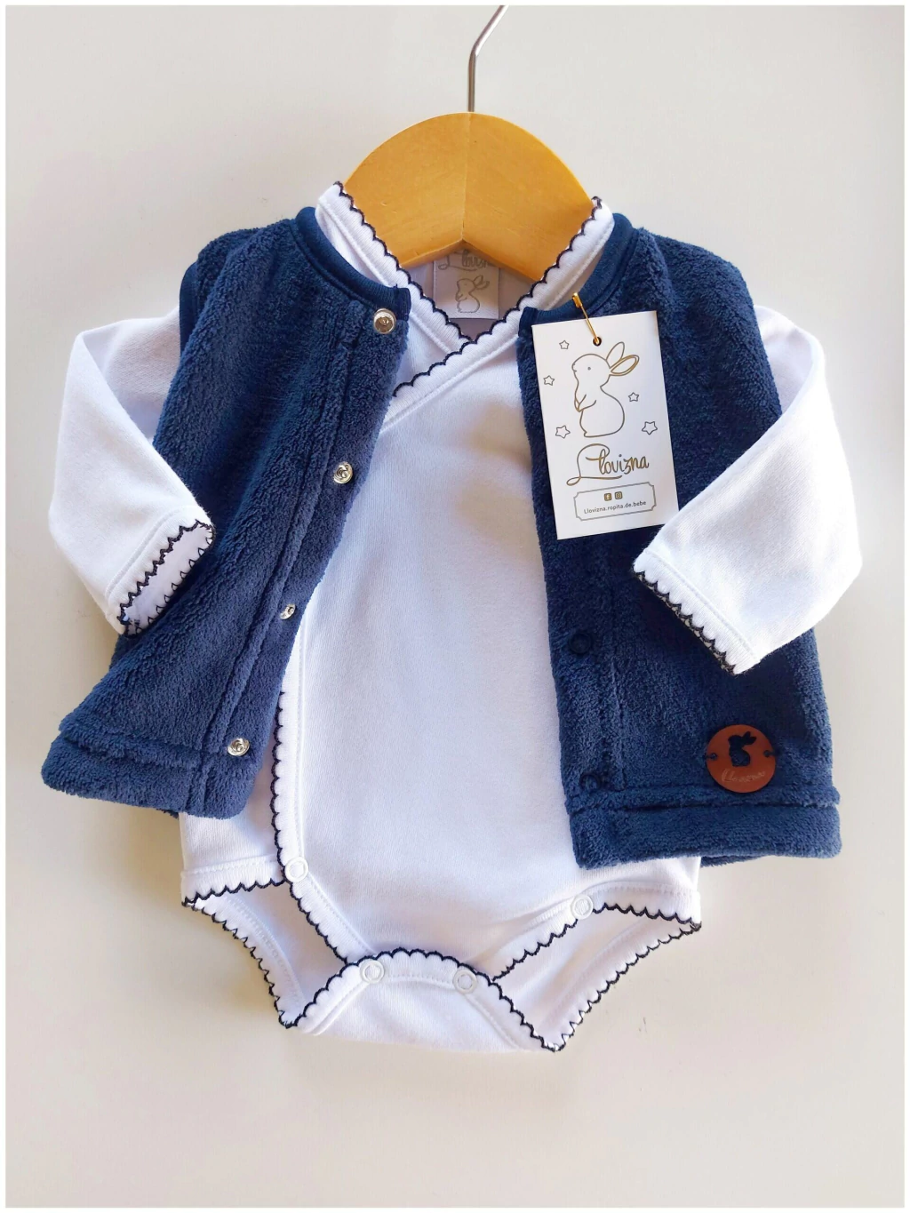 Nuestros hermosos chalequitos están fabricados en tela corderito bifaz, conocida por su increíble suavidad y capacidad para mantener a tu bebé abrigado y cómodo Este chaleco es perfecto para mantener la movilidad en los bracitos del bebé mientras lo protege del frío.