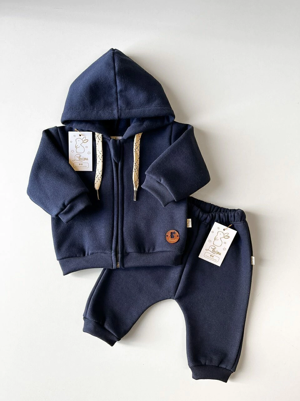 Confeccionado en algodón frisa de excelente calidad, este conjuntito es ideal para los días frescos. Su textura suave y abrigada cuida la piel delicada de tu bebé, mientras que sus terminaciones premium aseguran un calce perfecto y duradero.
