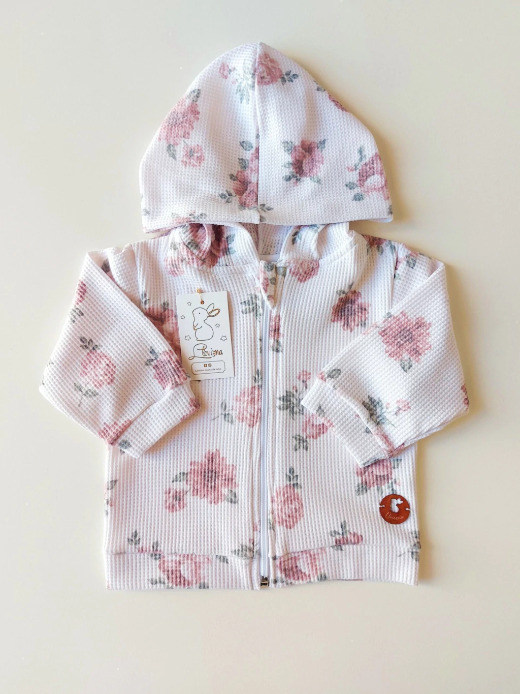 Nuestro conjunto de buzo y camperita de bebé es la combinación perfecta de confort y ternura. Ambas prendas están confeccionadas en tela waffle 100% algodón, reconocida por su textura suave, cálida y respirable, ideal para cuidar la delicada piel de tu pequeño.