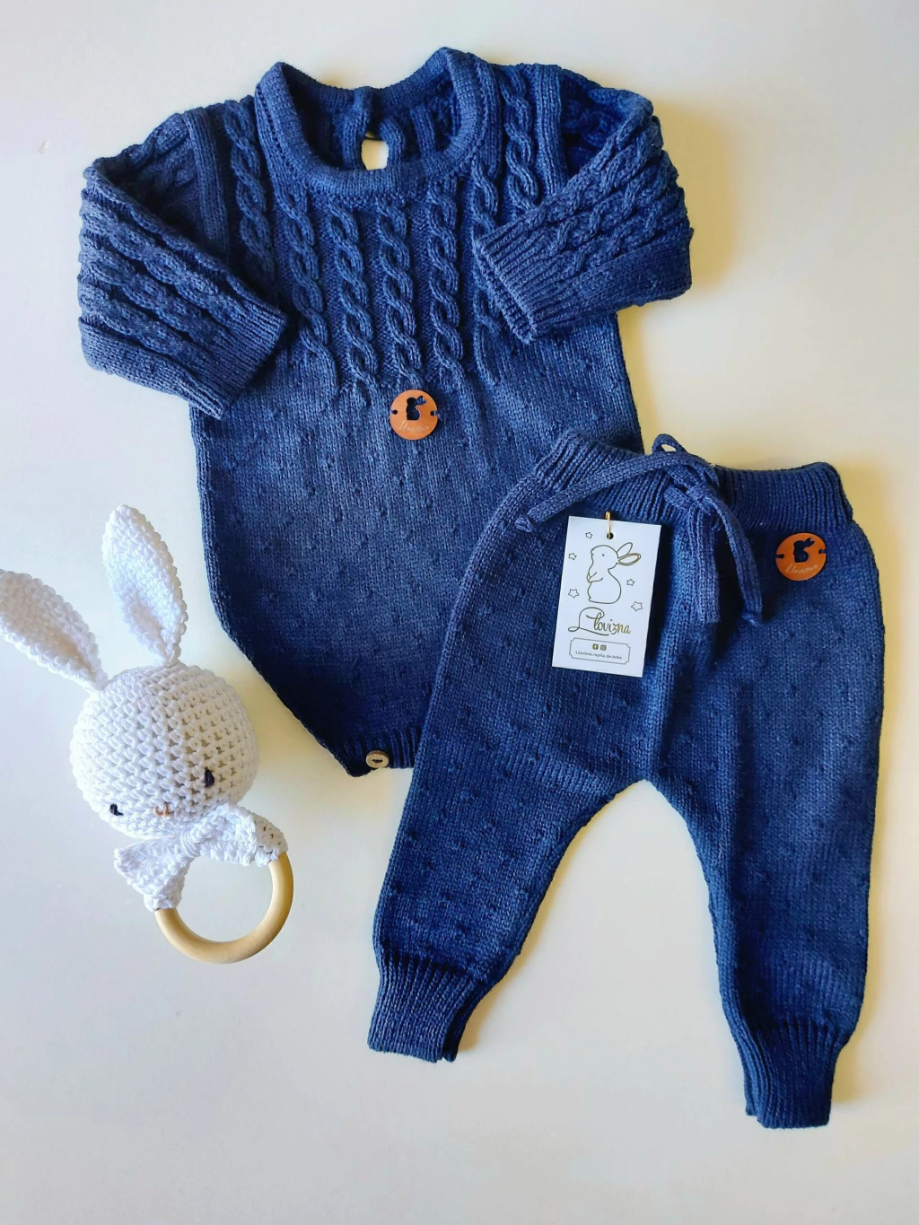 Este hermoso conjunto de lana hipoalergénica, diseñado para brindar suavidad y calidez sin irritar su piel delicada. Gracias a su tejido transpirable y ligero, tu bebé se sentirá cómodo y protegido en todo momento.