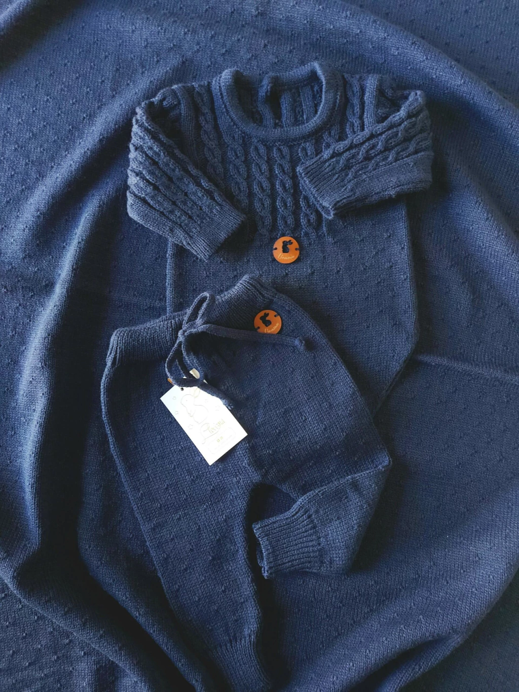 Este hermoso conjunto de lana hipoalergénica, diseñado para brindar suavidad y calidez sin irritar su piel delicada. Gracias a su tejido transpirable y ligero, tu bebé se sentirá cómodo y protegido en todo momento.