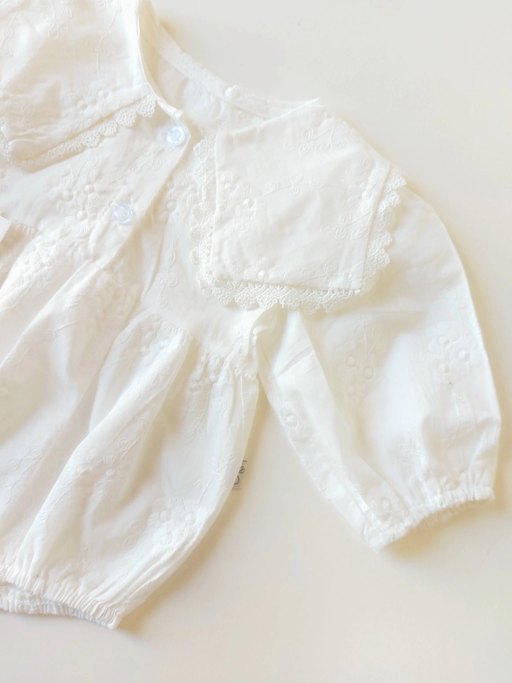 Este hermoso enterito blanco de bautismo está confeccionado con materiales de excelente calidad, con hermosos detalles en bordado de flores que le dan un toque delicado y elegante. Cada terminación está pensada para que tu bebé luzca adorable en esta ocasión tan memorable