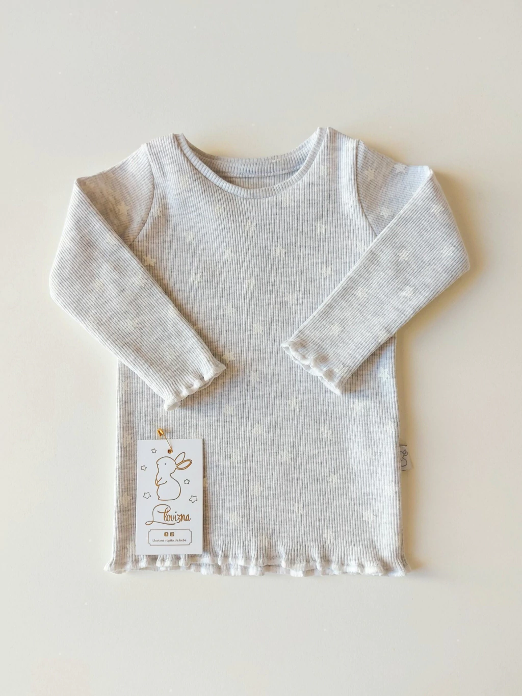 Dulce y delicada, esta remerita manga larga es el toque perfecto para realzar la ternura de tu bebé. Confeccionada en suave tela morley, brinda una sensación cálida, cómoda y flexible, ideal para los días de primavera y verano. Sus terminaciones cuidadas le aportan un acabado encantador, perfecto para acompañar cualquier conjunto con estilo y comodidad.