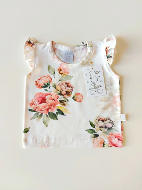 Dulce y delicada, esta remerita de mangas con vuelo es el toque perfecto para realzar la ternura de tu bebé. Confeccionada en algodón 100% pima, es súper suave, fresca y cómoda para los días de primavera y verano. Sus terminaciones le dan un acabado encantador, ideal para acompañar cualquier conjunto con estilo y comodidad.