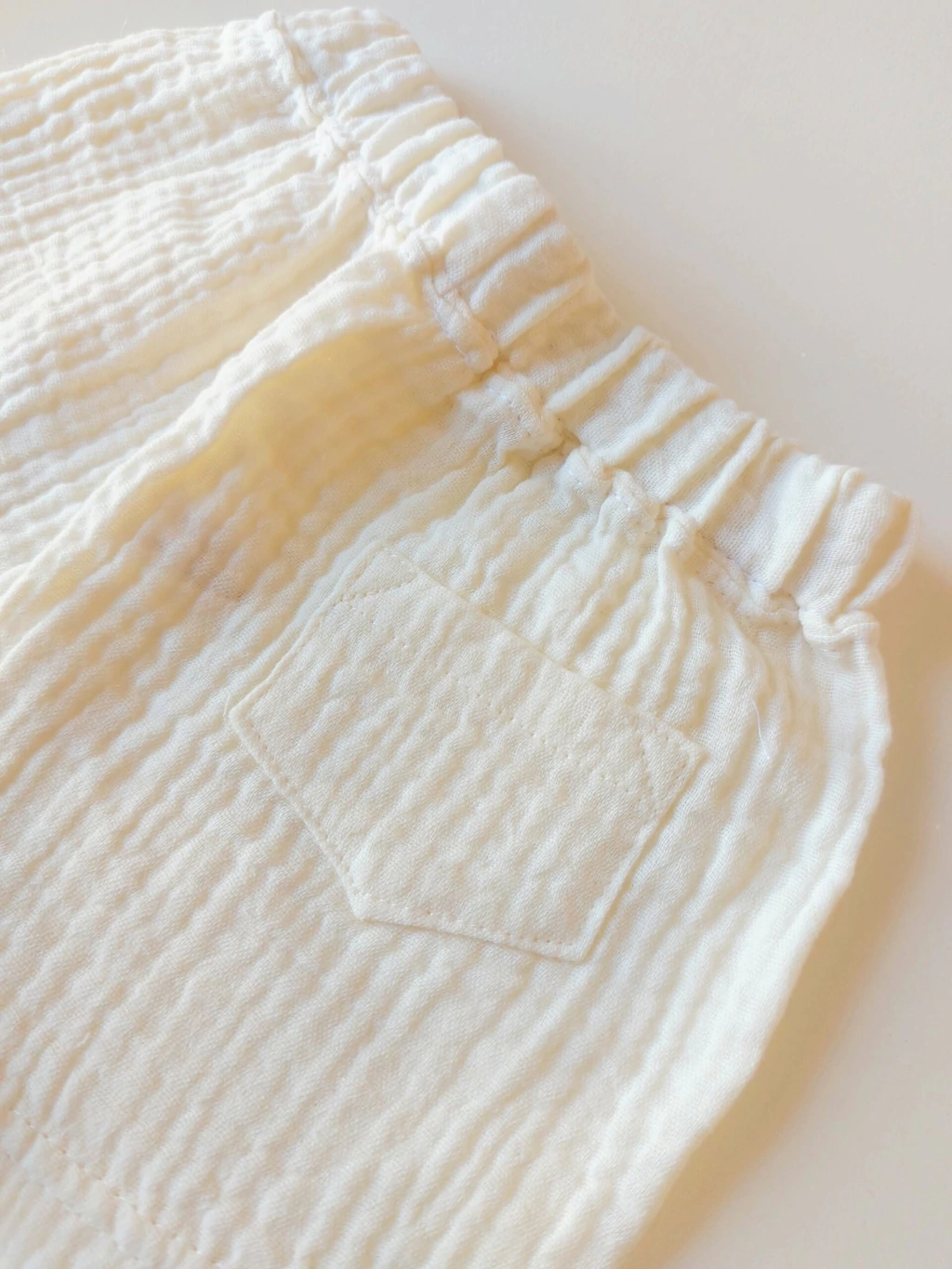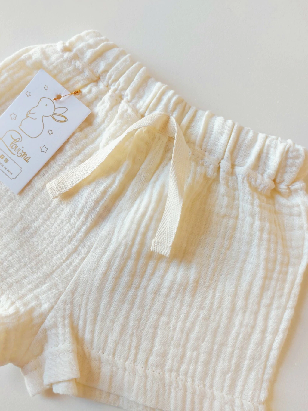 Nuestro adorable short de gasa es perfecto para mantener a tu bebé fresco y cómodo durante los días cálidos. Suave, liviano y transpirable, se convierte en la prenda ideal para acompañar cualquier look veraniego con ternura y estilo.
