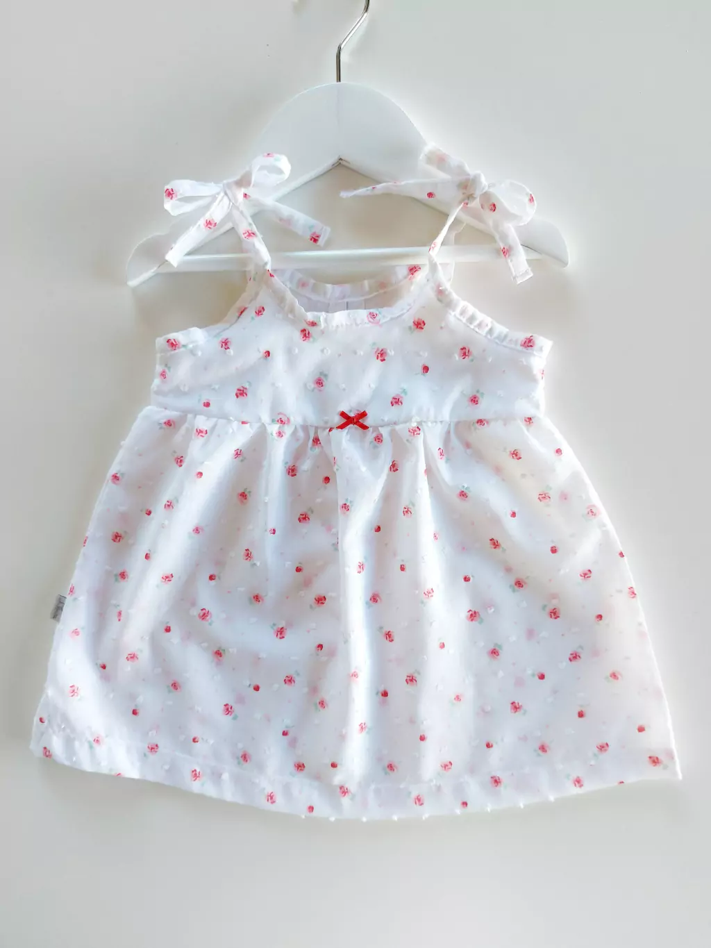 Este hermoso vestidito de algodón plumeti está diseñado especialmente para las princesas más pequeñas. Su tela suave y liviana asegura total comodidad en los días más calurosos, mientras que las musculosas regulables permiten un ajuste perfecto para que tu pequeña se sienta libre y feliz.